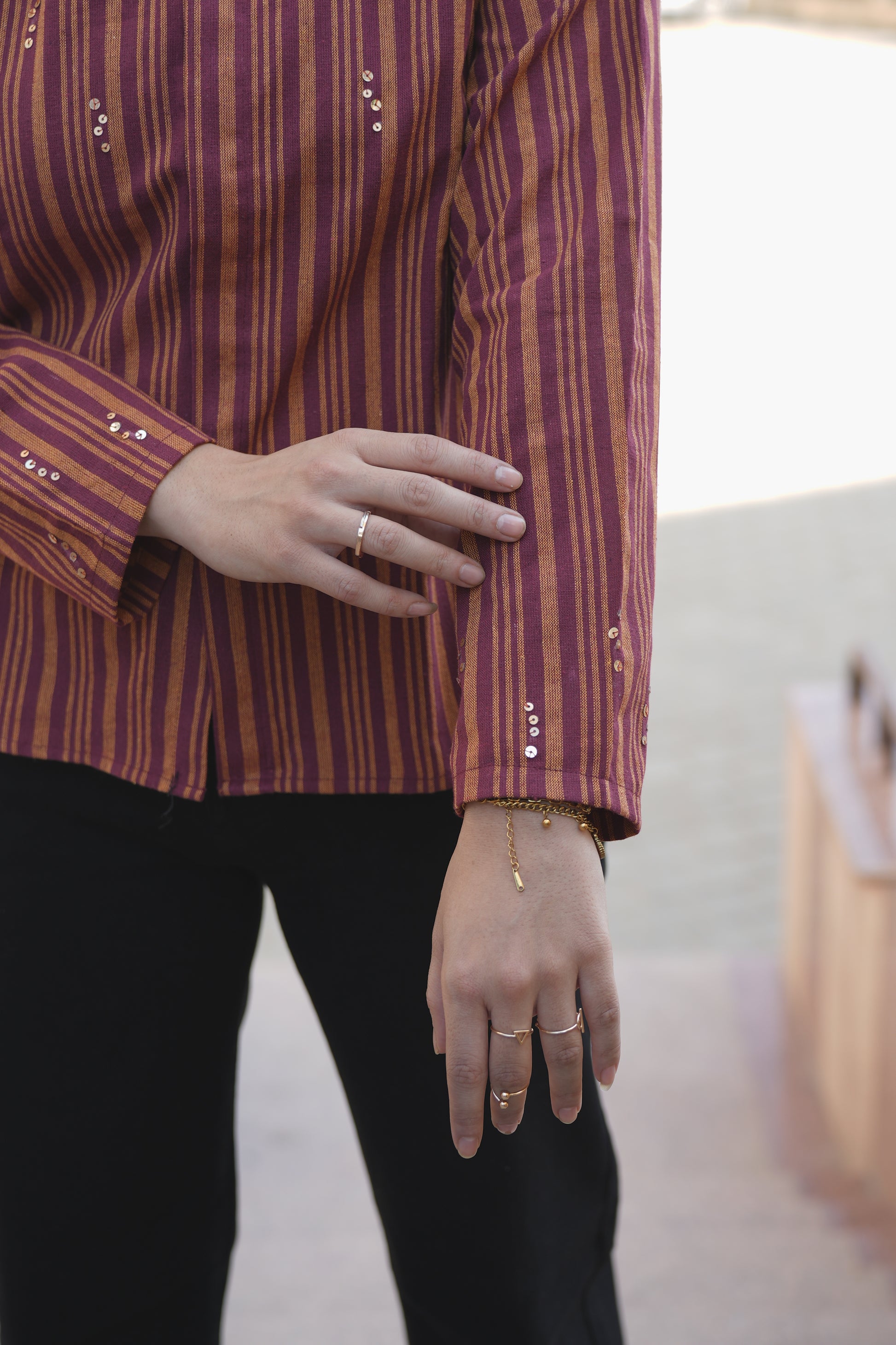 This Sunset Strip shirt features intricate sequin detailing that adds a refined sparkle to its design. Crafted with attention to quality, it blends a stylish, fancy look with comfortable wearability. Perfect for occasions that call for a sharp, standout appearance, this shirt elevates your wardrobe with a subtle yet sophisticated shimmer.